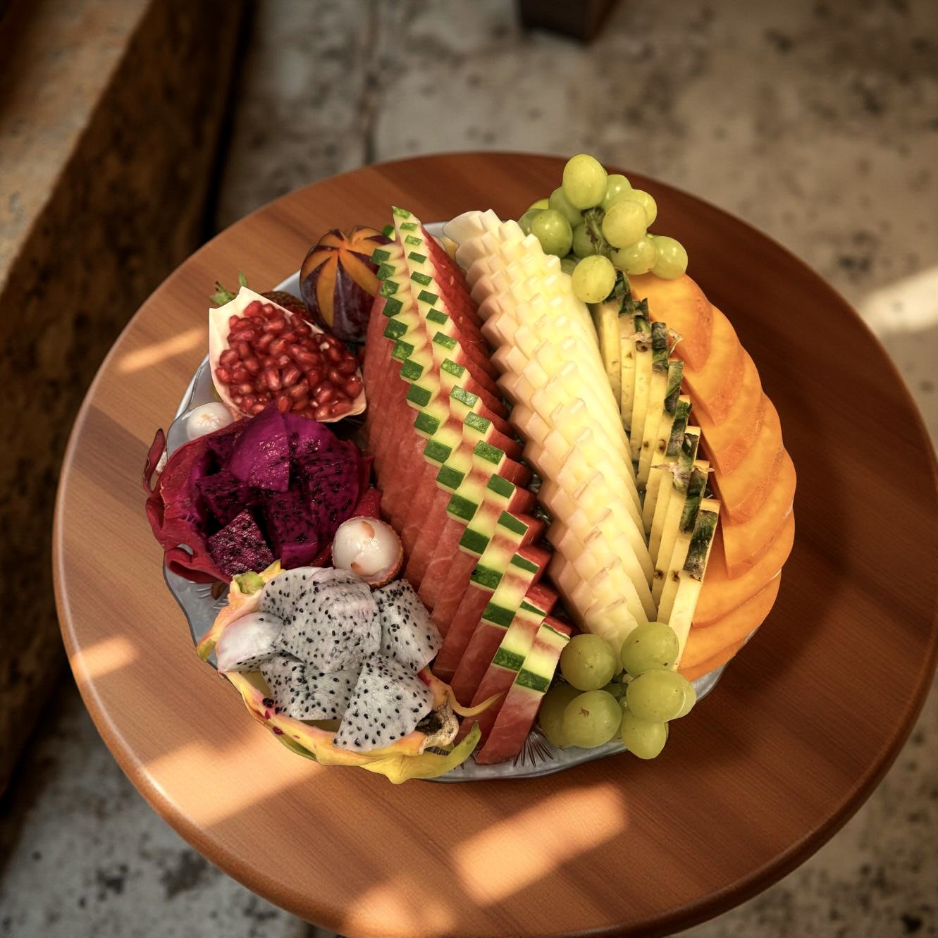 קרוסלת פירות פרימיום – מגש פירות עגול גדול