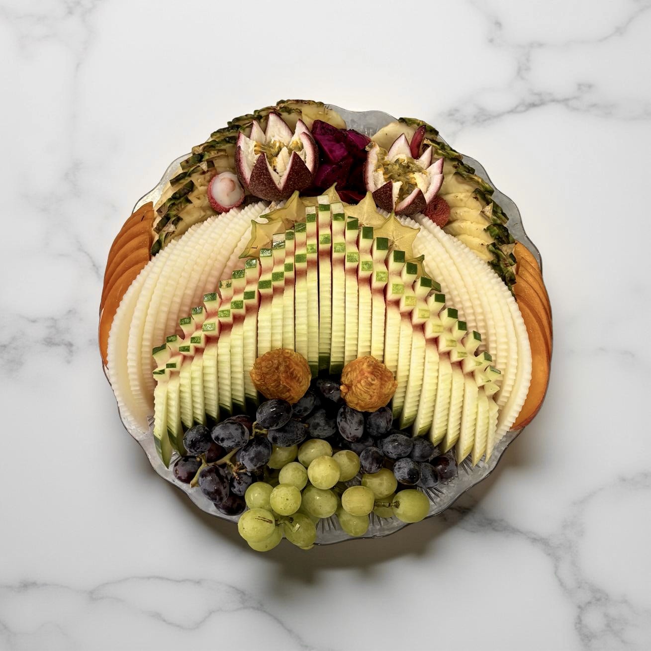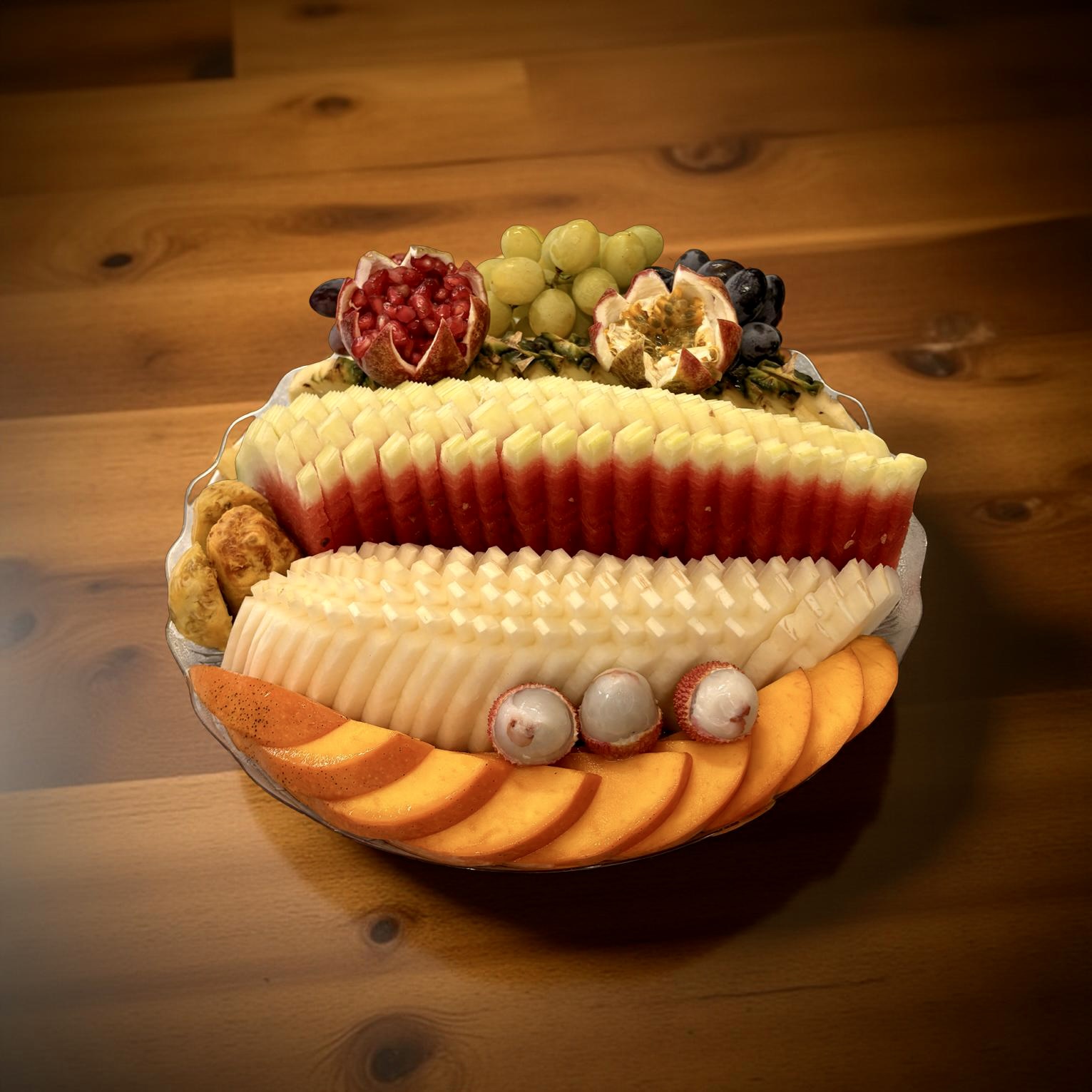 פסטיבל הפירות המלכותי – מגש פירות חתוכים מעוצב ענק