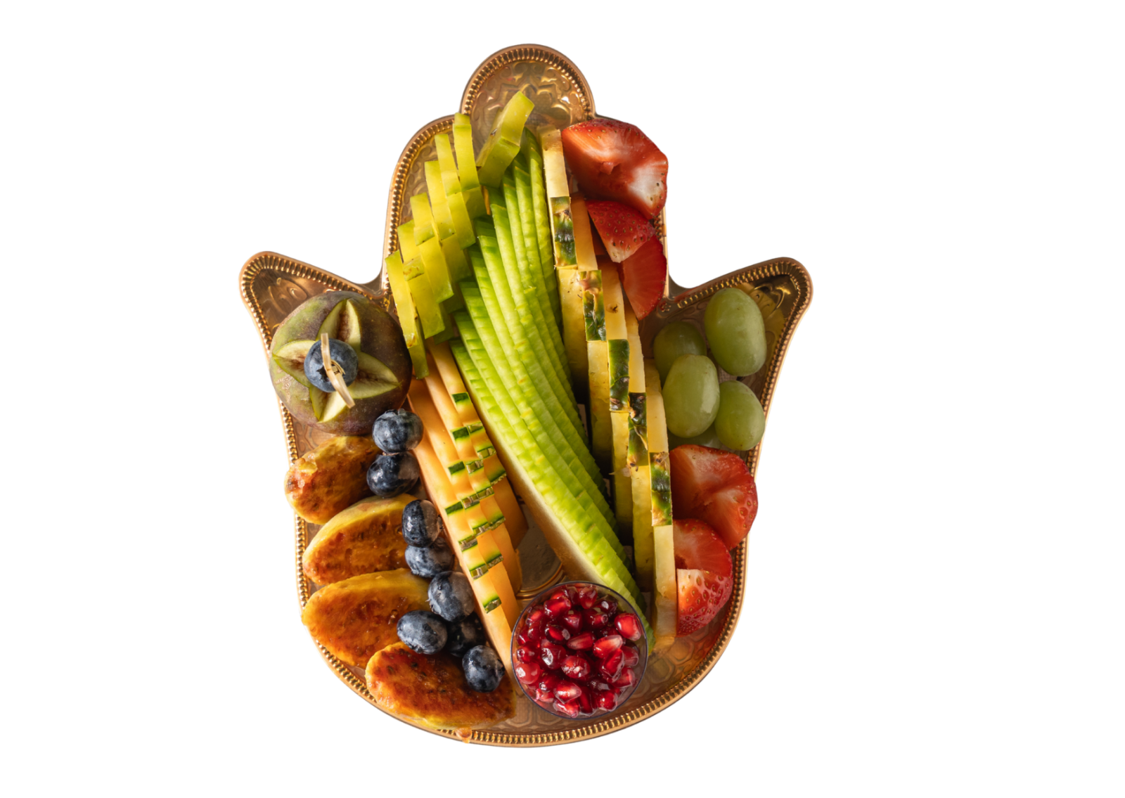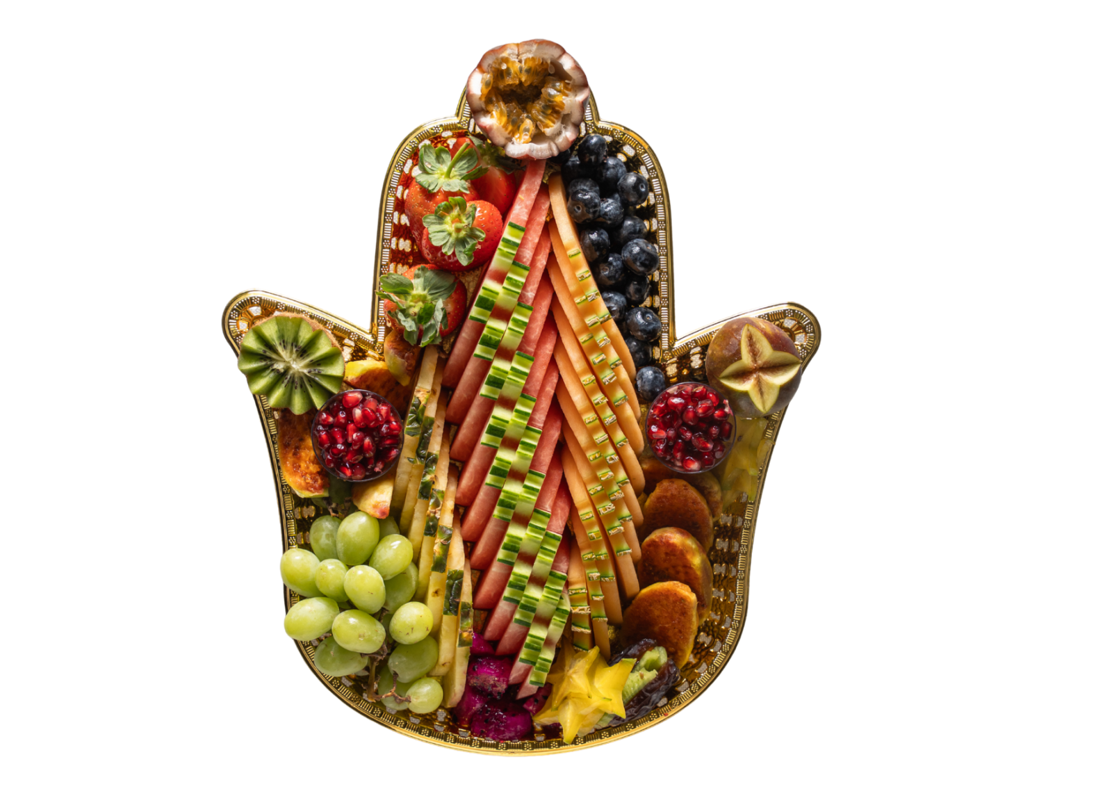 חמסה של שפע למזל וברכה – מגש פירות מיני בצורת חמסה