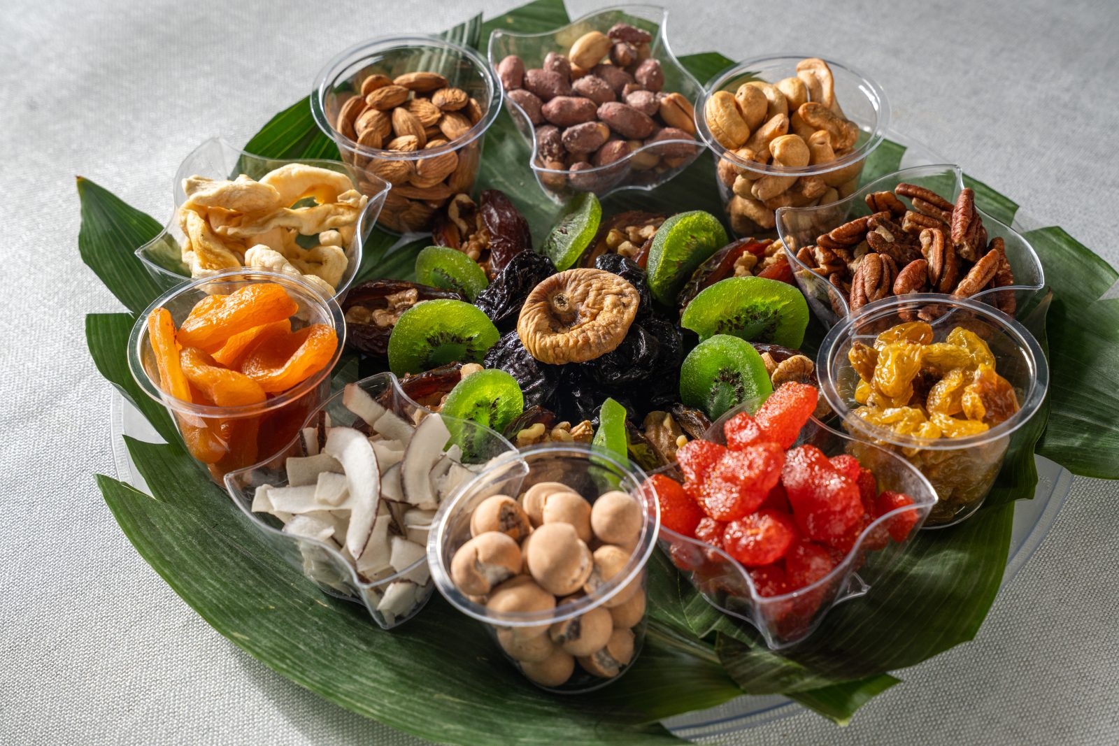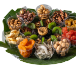 מארז חגיגי של פירות מיובשים מובחרים ופיצוחים קלויים המסודרים בצורה אמנותית ומהווה פתרון אירוח מושלם או מתנה מרשימה לעובדים, לקוחות ושותפים עסקיים שרוצים להוקיר להם תודה. המגש משמש כמרכז שולחן בארוחת חג אצל המשפחה או כהפתעה יוקרתית לחברים קרובים. ט"ו בשבט הוא הזדמנות מצוינת להעניק את מגש הפירות המיובשים שלנו כמחווה של הערכה המשלבת בריאות, מסורת וסטייל בלתי מתפשר שמתאים לכל מי שרוצים לשמח ולהוקיר לו טובה.