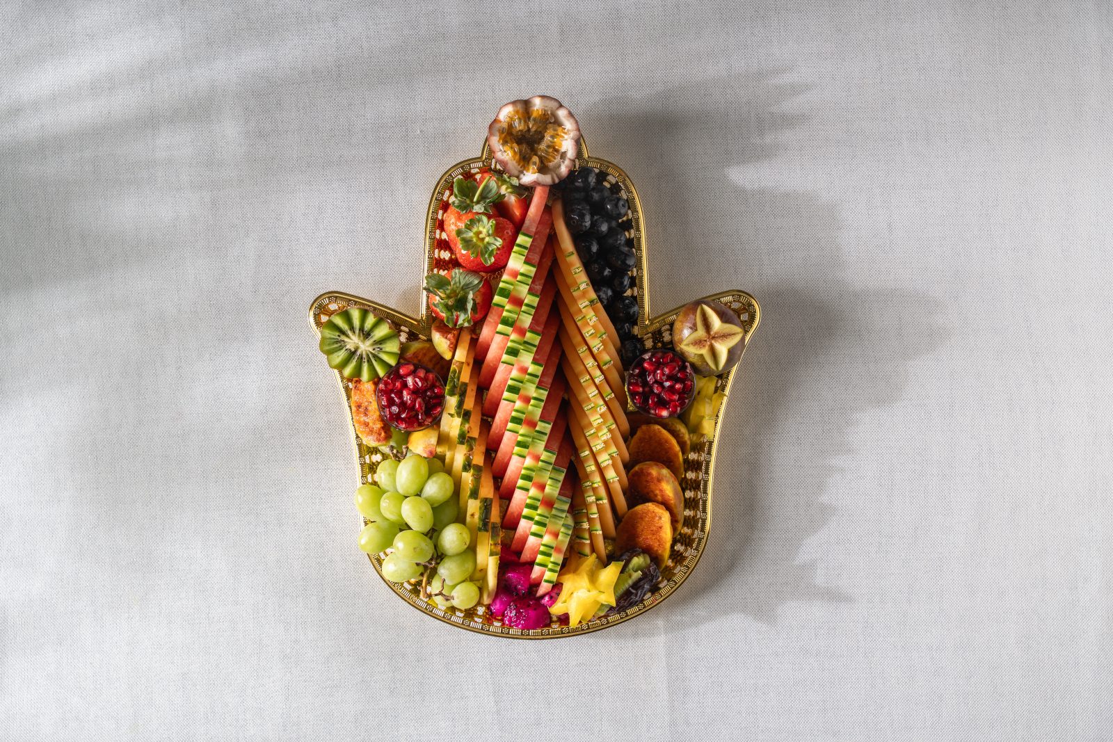 חמסה של שפע למזל וברכה – מגש פירות בצורת חמסה
