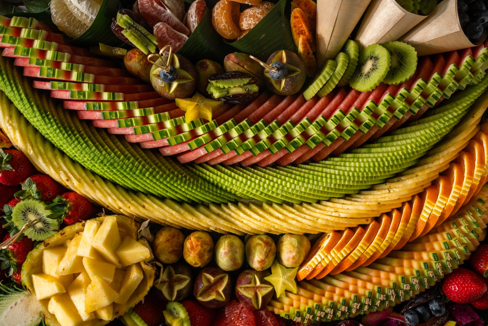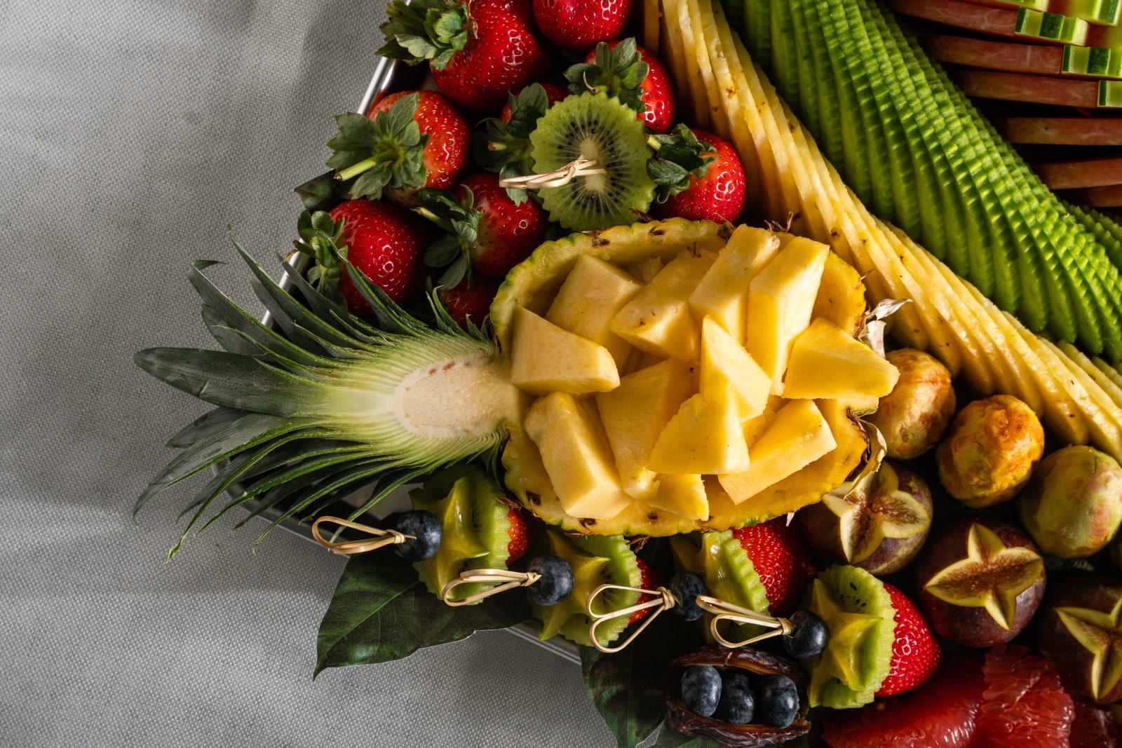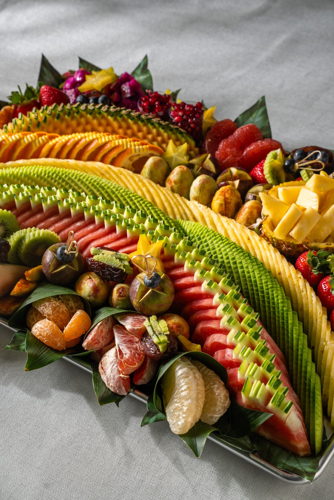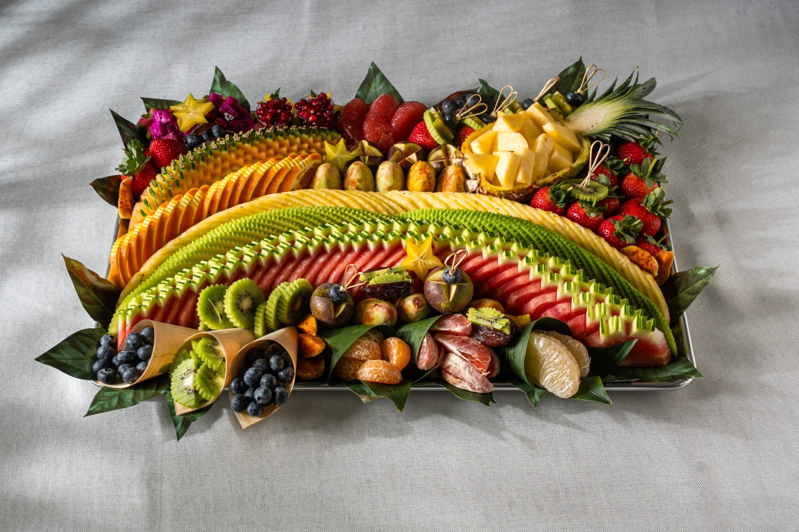מגש פירות ענק ומרהיב המעוצב בצורה אמנותית וצבעונית שפשוט אי אפשר להוריד ממנה את העיניים עם שפע עצום של פירות העונה הכי טריים ואיכותיים שיש. המגש משלב חיתוכים מרהיבים של פירות טרופיים הכל מסודר בצפיפות מרשימה שמשדרת יוקרה ושפע ללא פשרות. זהו הפתרון האידיאלי לאירועים גדולים, מסיבות פרימיום או כמתנה גרנדיוזית שתשאיר רושם עז על האורחים ותהפוך כל שולחן לחגיגה קולינרית בלתי נשכחת. השילוב בין הטעמים המתוקים והמרעננים למראה העשיר והמעוצב מבטיח חוויית אירוח מושלמת שמרשימה את כולם כבר מהמבט הראשון.