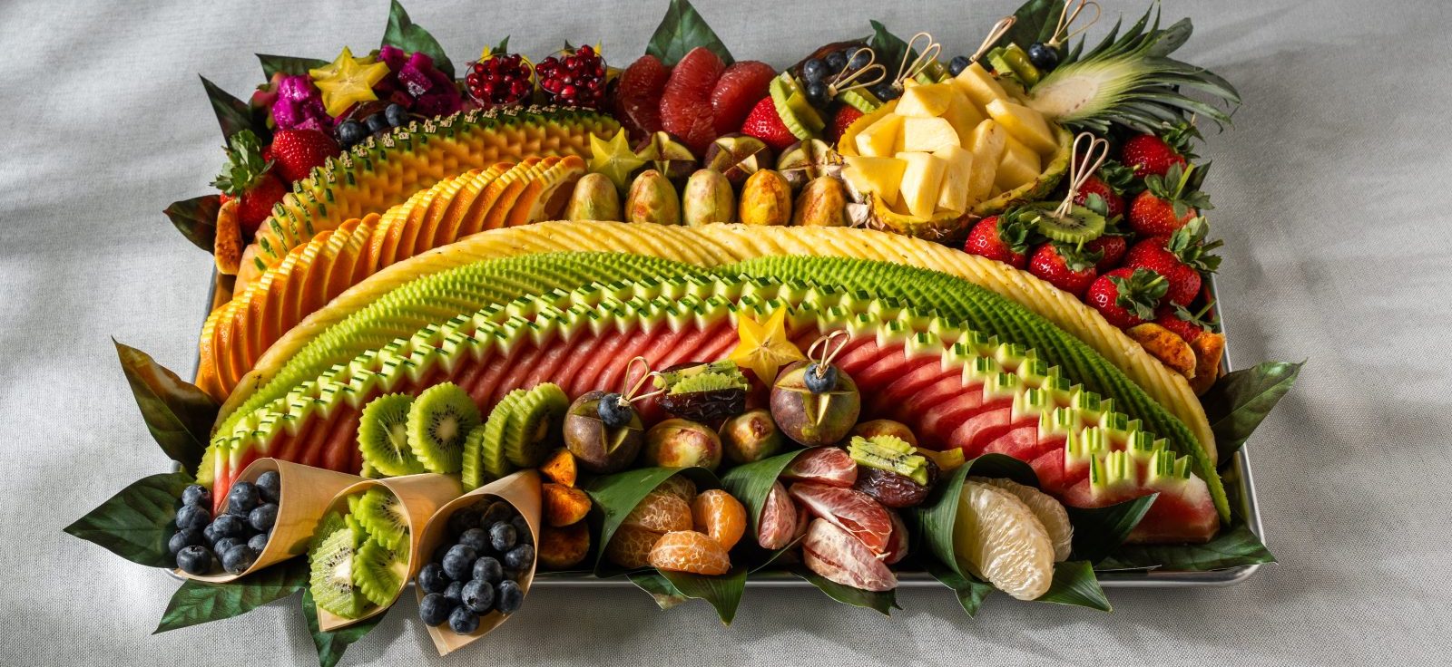 פסטיבל הפירות המלכותי – מגש פירות חתוכים מעוצב ענק