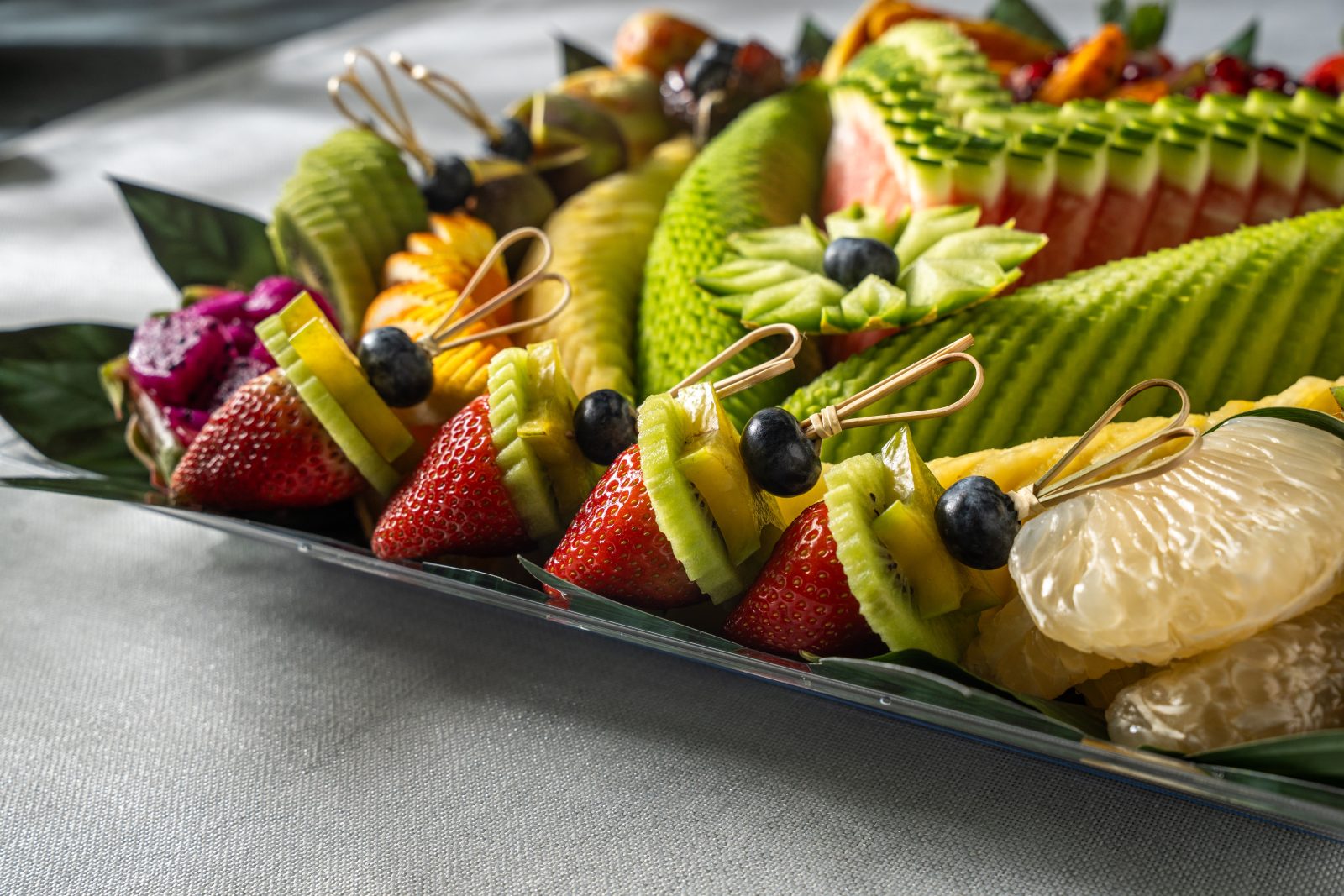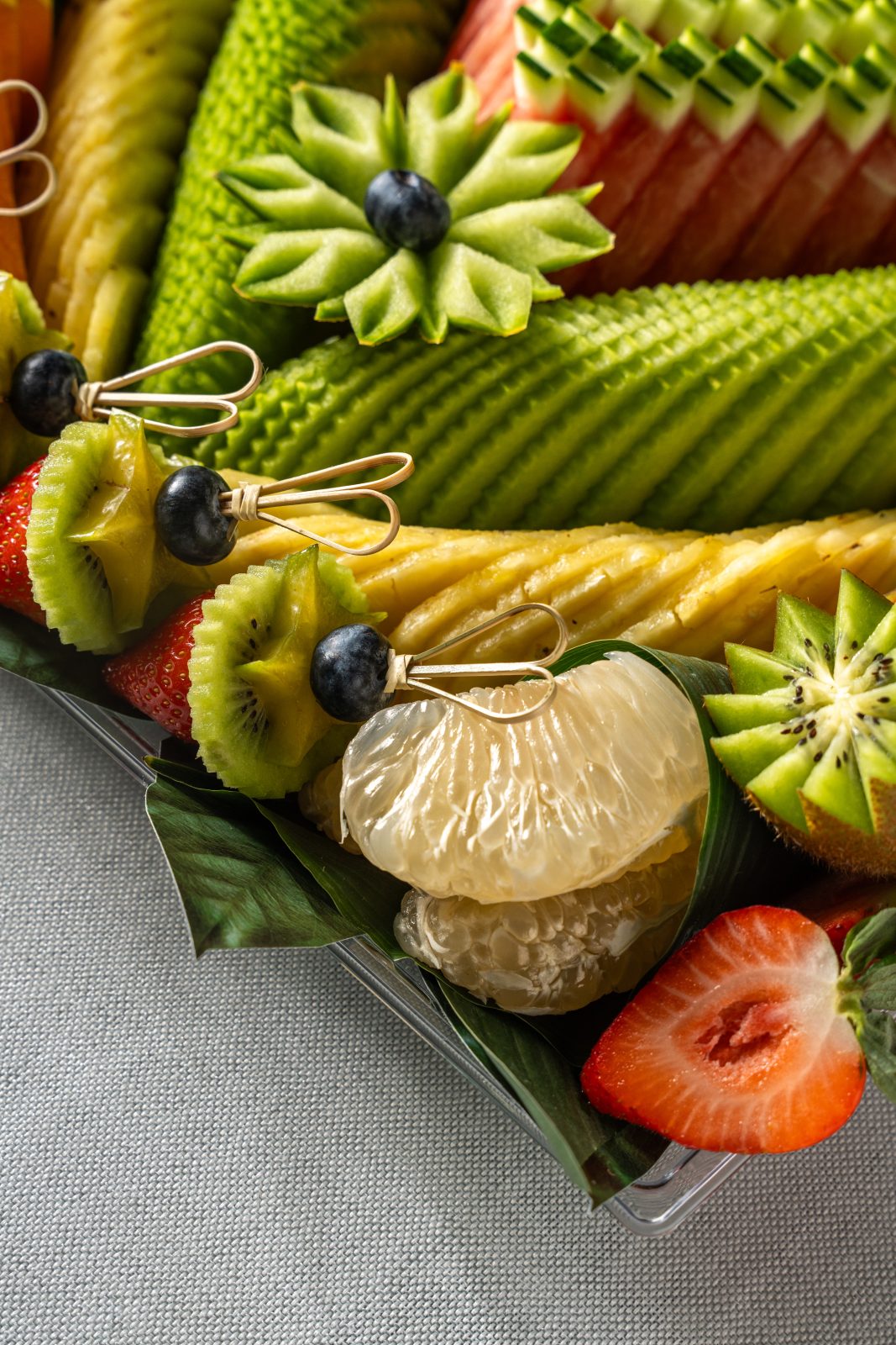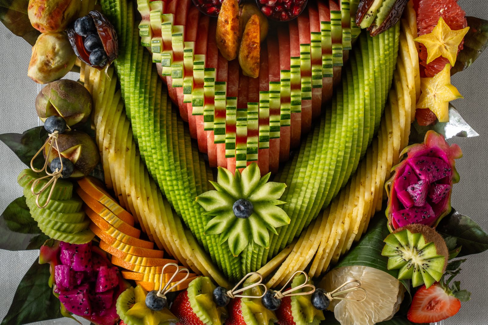 מגש פירות יוקרתי בצורת ריבוע גדול, עם חיתוך סימטרי ומדויק של פירות העונה שיוצרים מראה עשיר וצבעוני שמושך את העין מיד. המגש עמוס בפירות פרימיום טריים וכולל כ-12 מינים המונחים בקפידה על מצע עלים טבעי המעניק לו מראה רענן ויוקרתי במיוחד. מדובר בבחירה המושלמת כמרכז שולחן מרשים לאירועים חגיגיים או כמתנה יוקרתית שמשדרת שפע והשקעה, כזו שמשאירה רושם עמוק על כל מי שמקבל אותה. השילוב בין הדיוק האמנותי בחיתוך לבין האיכות הבלתי מתפשרת של הפירות הופך כל טעימה לחוויה קולינרית מענגת שמעלה את רמת האירוח שלכם בכמה דרגות.
